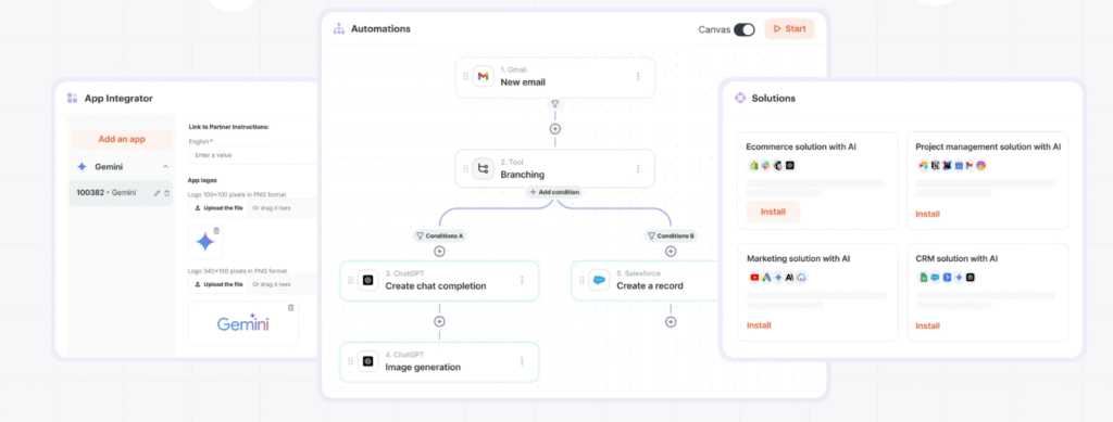 Albato was launched a few years ago and has been evolving rapidly. It’s already integrated 1000+ apps and services across categories like CRM/ERP, marketing, social media, e-commerce, communication, databases, and more. If an app isn’t available yet, Albato can still work with it through generic webhooks or its “Works with any API” module, meaning you can connect custom applications by plugging in API info. The platform is also AI-driven, which we’ll explore later – Albato has embraced AI tools to enhance what your automations can do.